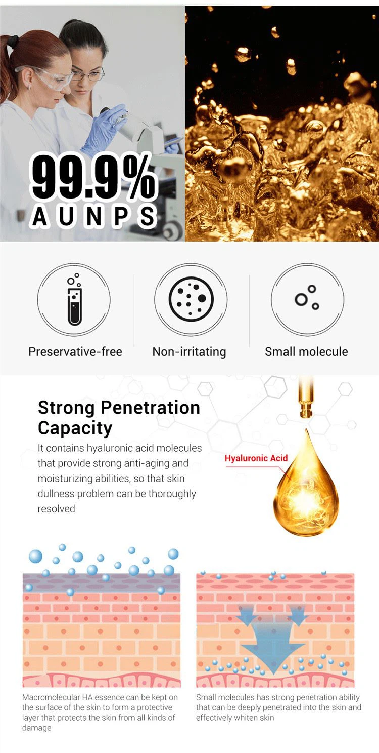 5. For all skin types: 24K gold serum for face with natural ingredients can effectively reduce the stimulation of sensitive skin, suitable for the anti-aging needs of women of different ages. A refreshing effect that quickly blends the essence into the skin.
